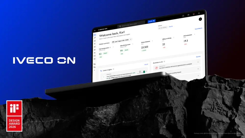 Het wagenparkplatform IVECO ON heeft de iF DESIGN AWARD 2026 gewonnen. De prijs bekroont de vernieuwde digitale gebruikerservaring en de integratie van realtime data, voorspellend onderhoud en AI-inzichten voor efficiënter vlootbeheer.